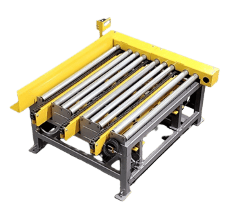 El transportador tipo transfer permite cambiar la dirección y realizar transiciones de productos entre distintas líneas de transporte. Funciona con rodillos motorizados o cadenas, moviendo productos en ángulos rectos u otras configuraciones. Ideal para centros de distribución y líneas automáticas, transfiere cajas, paquetes o piezas de forma fluida y sin daño, reduciendo tiempos muertos. Puede integrarse a sistemas de control para operación automática. Fabricado con materiales resistentes, es apto para cargas medianas o pesadas en entornos logísticos, industriales o farmacéuticos, asegurando precisión y velocidad.