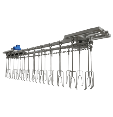 El equipo transportador aéreo con cadena permite el traslado suspendido de piezas, contenedores o productos, liberando espacio en el piso de trabajo y optimizando la distribución del área productiva. Es ideal para procesos de pintura, ensamblaje, secado y transporte de materiales en plantas industriales, donde se requiere un flujo constante y controlado.